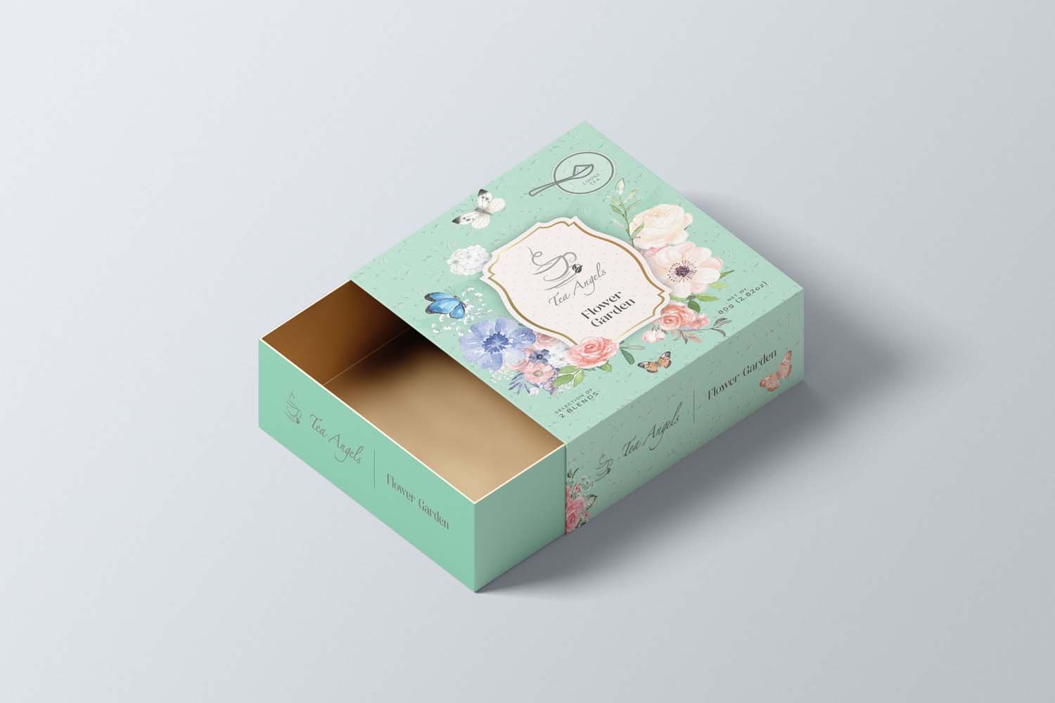 Flower Garden Tea Assortment Packaging Packaging created for unique tea retail units to be sold in United Kingdom and USA. Client London Tea Exchange Kefro Tools Used Adobe Photoshop, Adobe Illustrator